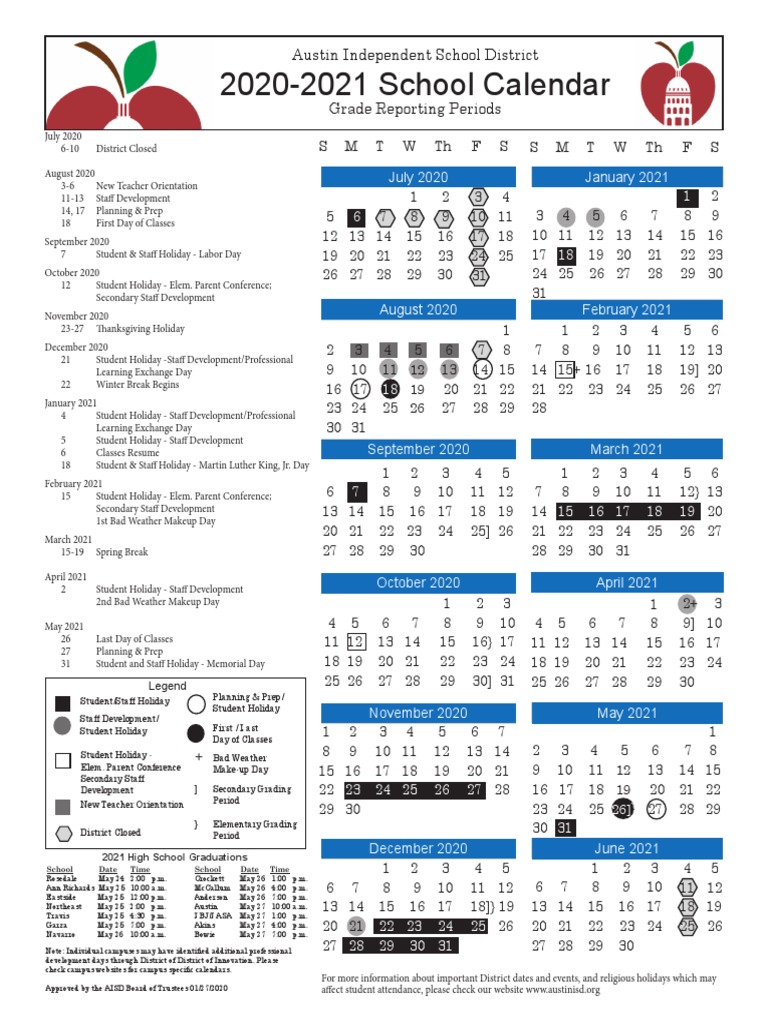 Aisd Calendar 2020 2021v2 PDF Seasons Holidays