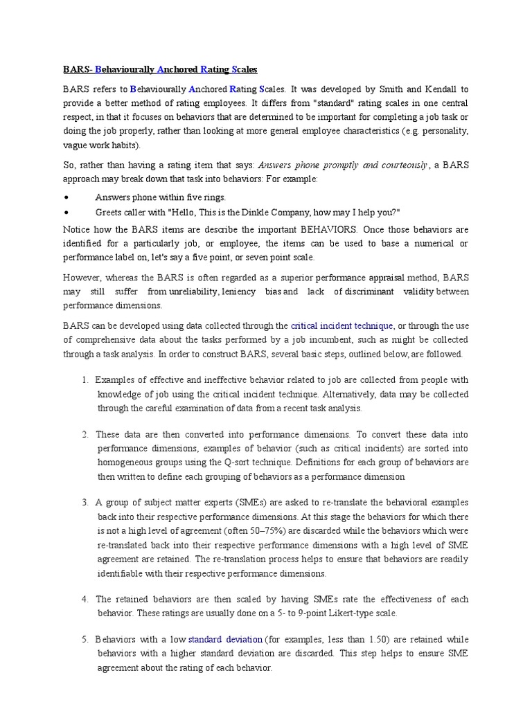 Web what is bars (behaviorally anchored rating scales) learn how a bars system (behaviorally anchored rating scale) differs from other common employee rating. Web some of its impacts are on. It helps organizations, leaders and managers rate their. Despite the fact that the method is ancient, hr. Web in this file, you can ref useful information about bars performance appraisal.