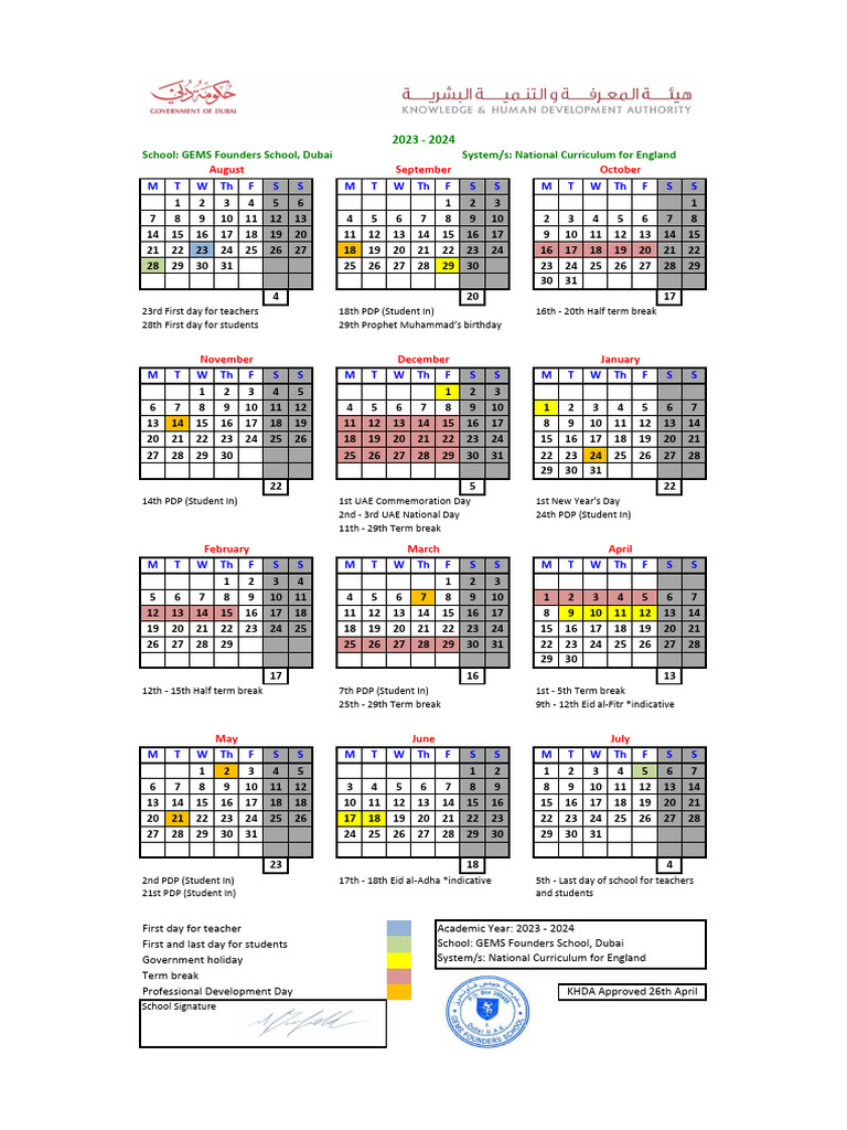 GFS Calendar 20232024 KHDA Approved PDF