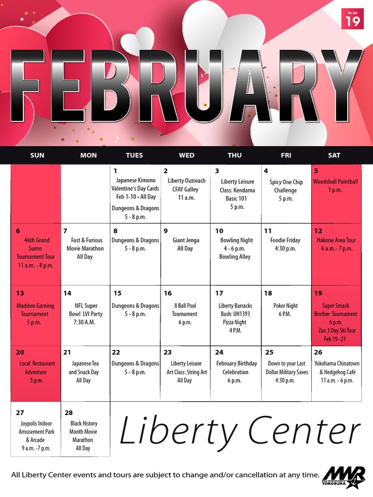February Activity Calendar for the Liberty Center A Variety of Social