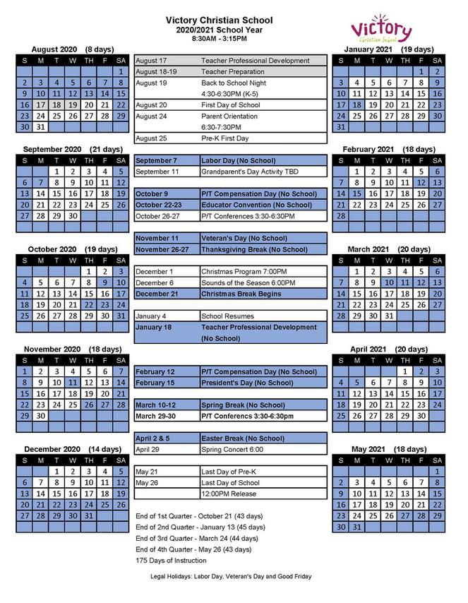 General Calendar 20212022 Victory Christian School