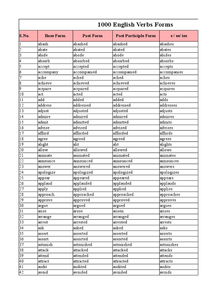 Web english verb forms forms of verb or for that matter the verb itself is an integral part of english. Web grammar verb forms—what are they? Web main verbs have three basic forms: It is so called because it is the most. Install a shortcut ( firefox or chrome) then type conj write in your address bar for the fastest.