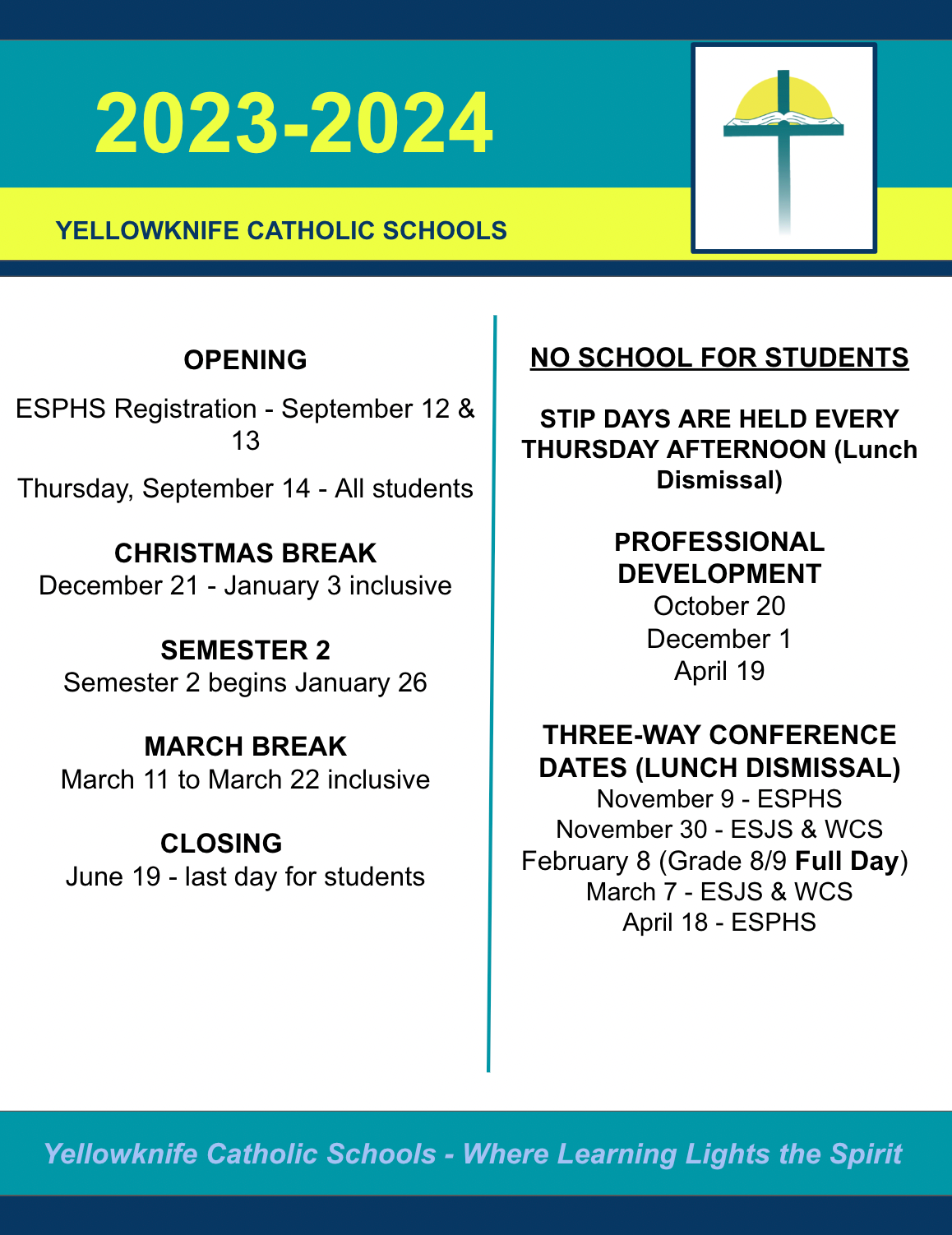 YCS Family Calendar 2024/2025 École St. Joseph School